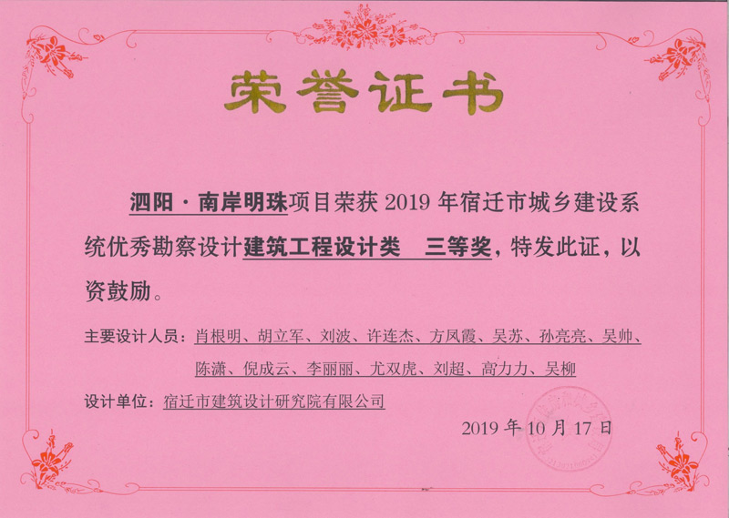 泗陽.南岸明珠建筑工程設(shè)計(jì)三等獎